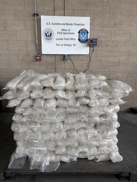 U.S. Customs and Border Protection officers say they seized 908 pounds of methamphetamine hidden in a title shipment at the Pharr International Bridge last week.