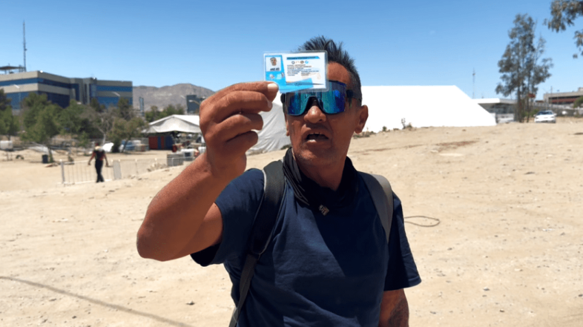 In Downtown Juarez, Reynaldo Aguirre showed off his Mexican immigration permit while talking about how CBP One has become the only option for asylum.
