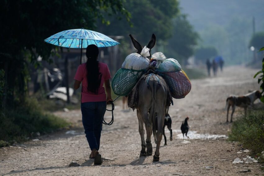 Indigenous women walk their donkeys loaded with firewood for cooking in Plan de Ayala, a Tojolabal village in the Las Margaritas municipality of Chiapas state, Mexico, Wednesday, May 1, 2024. (AP Photo/Marco Ugarte)