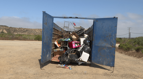 SAN DIEGO (Border Report) — Dozens of makeshift ladders mysteriously appeared in a dumpster near the border wall on Tuesday morning.