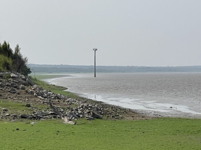 “We can see the banks, we can see green banks. We can see the rocks. Normally, we don’t see this. Normally, the water level is pretty high enough where we’re not able to see this,” Treviño said Thursday as he took Border Report on an exclusive tour of operations from atop a catwalk over the Rio Grande.