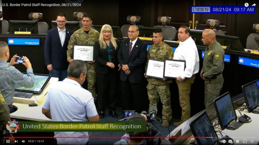 “I get to work alongside great men, like you two individuals that saved someone’s life,” he said. “The community is so supportive of what we do. Dr. Treviño, I really appreciate you recognizing these individuals. It means a lot to us. There’s a lot of Border Patrol agents who do this type of stuff every day and it goes unrecognized. So from the bottom of my heart, it means a lot that you took the time to recognize them.”