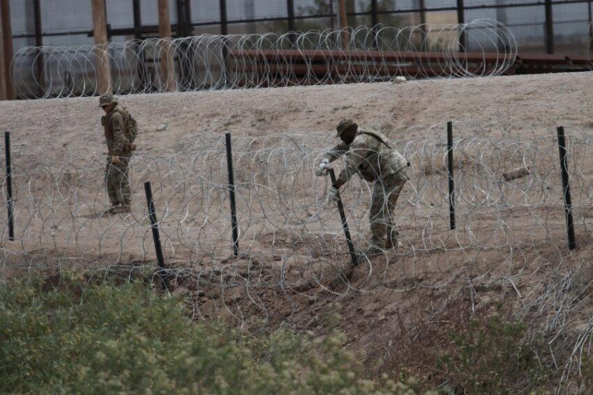 Texas Army National Guard troops patrol the border as part of Operation Lone Star, the state-funded border security initiative that Gov. Greg Abbott started in 2021.