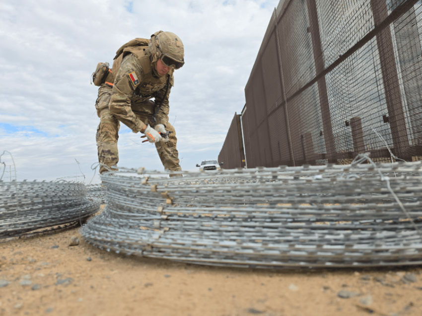 Texas Army National Guard members continue to install layers or razor wire at the Rio Grande in El Paso, Texas. (State of Texas)