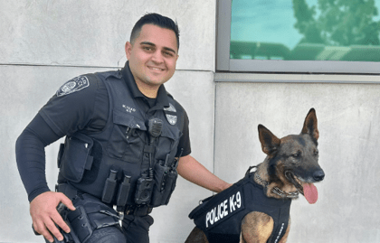 A K-9 with the El Cajon Police Department was gifted new body armor from a nonprofit dedicated to saving dogs of law enforcement and similar agencies across the United States.