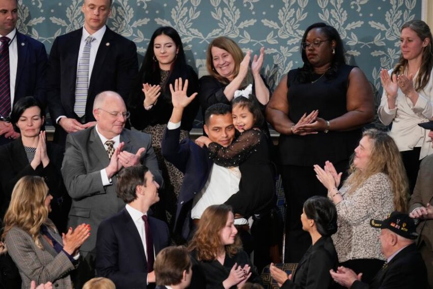 Marcus Coleman held up his daughter Dalilah to cheers during President Trump’s State of the Union address Tuesday night inside the House chamber at the U.S. Capitol in Washington.  Read: Read More
