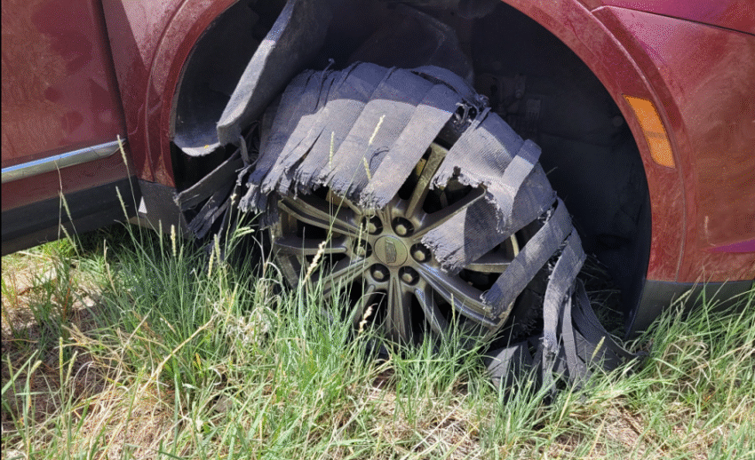 The device caught a tire on the fleeing vehicle, but the driver kept going. Records show the Pathfinder swerved to the wrong side of the road, nearly struck the barbed wire fence of a property and ended up in gravel pit off the shoulder.