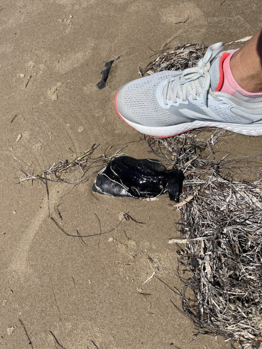 On Thursday, he was combing for treasures with his trusty metal detector but says he was finding more than the occasional necklace or coin: He was finding tar.