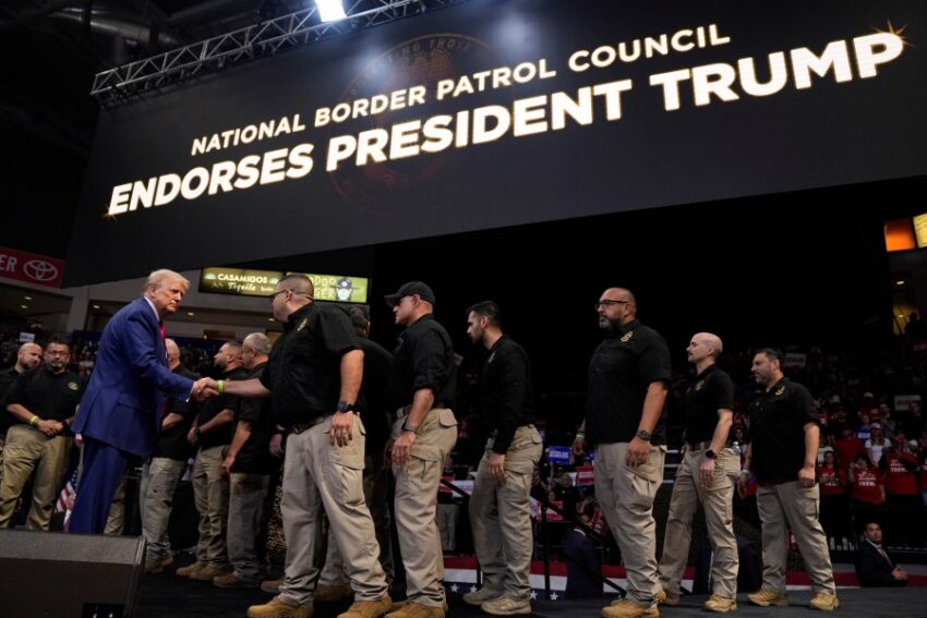 Trump made his pledge during a rally Oct. 13 in Prescott Valley, Arizona, roughly 260 miles north of the state’s border with Mexico. He accepted an endorsement from the agents’ union, the National Border Patrol Council, which is a longtime Trump backer that endorsed him during his prior two campaigns.