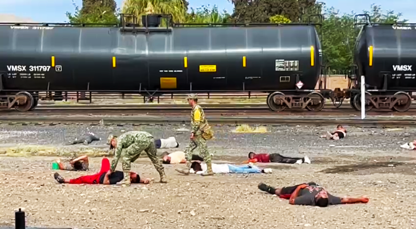 Soldiers could be seen rendering aid to individuals lying on the ground. Thick smoke rose next to parked tank cars on a rail line that cuts through the city and leads to a railroad bridge into El Paso, Texas.