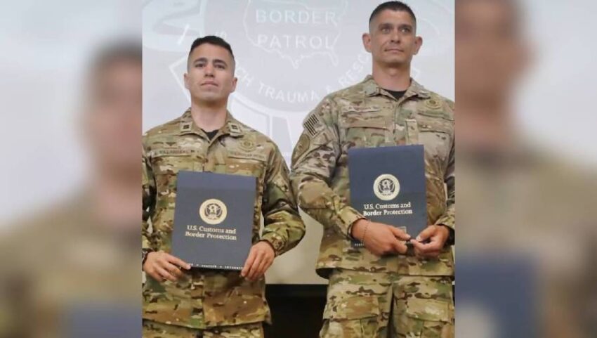 Border Patrol Agents Jesse Villarreal and Jose Briseno received the CBP Life-Saving Award during a graduation ceremony in El Paso for saving the life of Tabatha Sullivent.