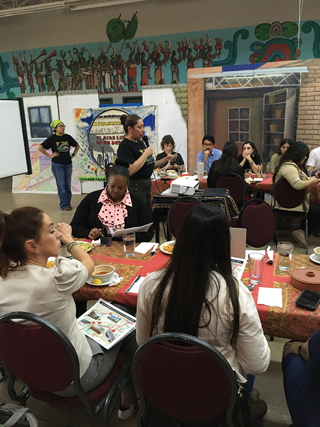 Cemelli de Aztlan speaks at La Mujer Obrera before the toxic tour