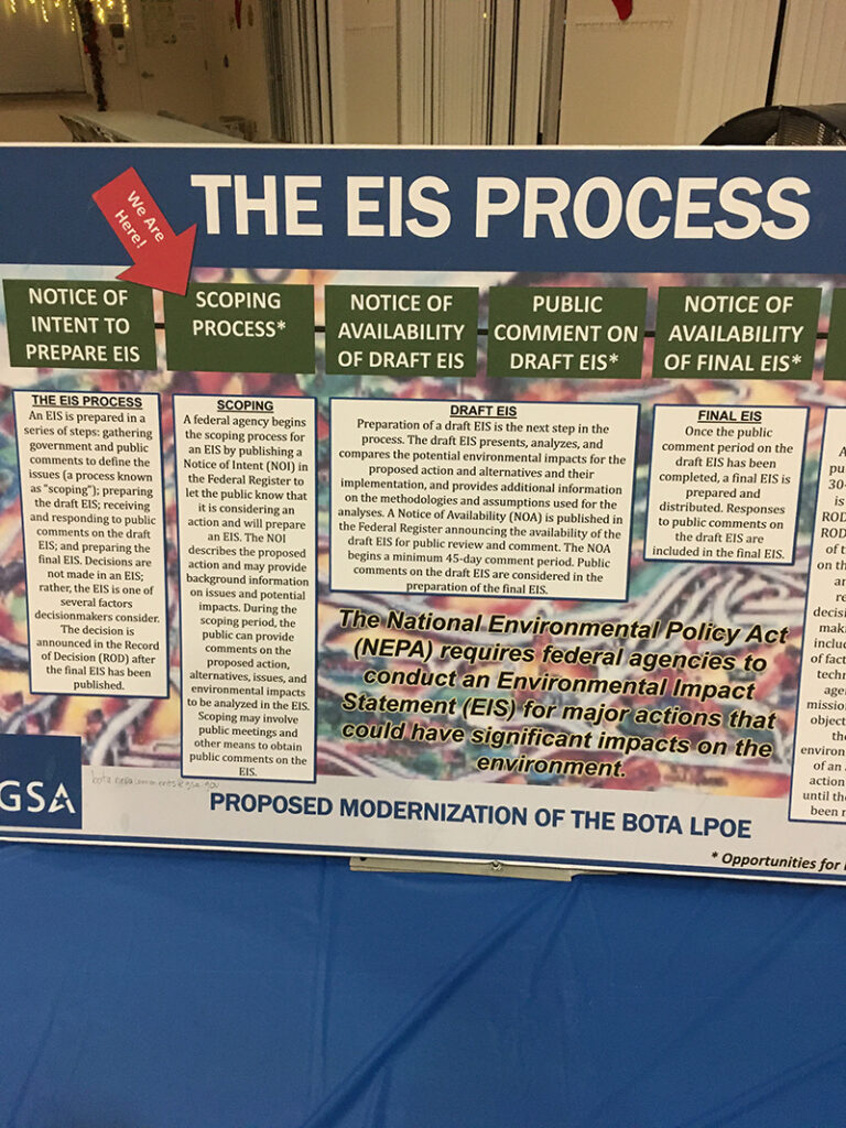 Hosted by the federal government’s General Services Administration (GSA), the December 13 public scoping meeting marked the formal process of drafting an Environmental Impact Statement (EIS) mandated by the National Environmental Policy Act.