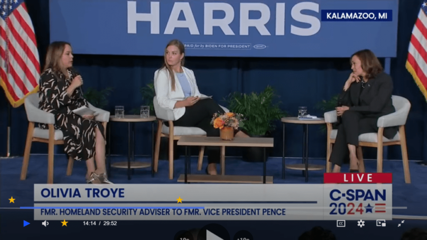 “I don’t agree with Kamala Harris on every issue. But the one thing that I know that I can trust her and Tim Walz to do is to protect our freedoms, our individual freedoms.”