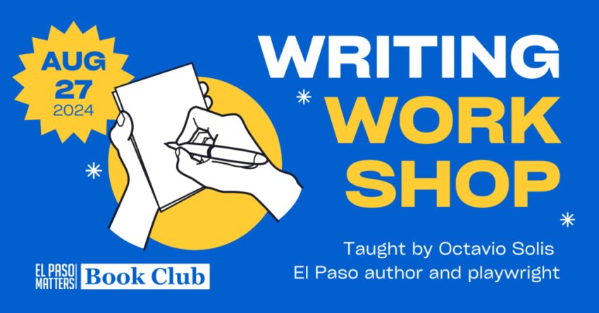 Join the El Paso Matters Book Club for a writing workshop, taught by El Paso author and playwright Octavio Solis, from 3 to 6 p.m. Tuesday, Aug. 27, at the Jenna Welch and Laura Bush Community Library at El Paso Community College’s Northwest Campus, 6701 South Desert Blvd.