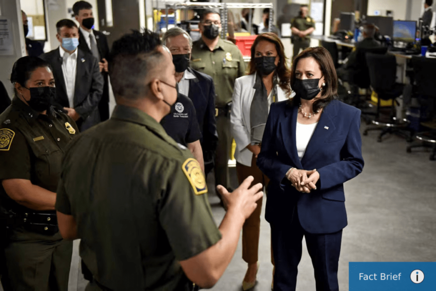 Vice President Kamala Harris visited the U.S.-Mexico border June 25, 2021, stopping in El Paso, Texas, to tour a Border Patrol processing center and a port of entry, El Paso Matters reported.