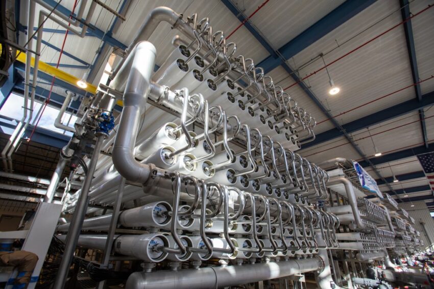 “Think of your coffee filter. That’s just like any mechanical separation. That’s not what this is,” Sepulveda said of the plant’s reverse osmosis treatment process. Instead, the removal of contaminants “is actually happening on a molecular cation basis.”