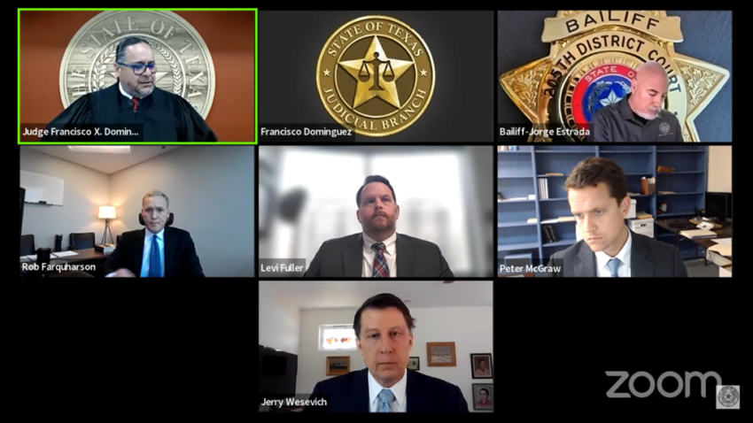 “There are a number of issues that were raised here that were addressed in the pleadings, but that, as you’ve argued them, require me to go back and revisit and look at it a little more closely. So, I would expect, and I’ll do my best to get something to you sooner, but expect a ruling on this in two weeks, by the end of two weeks,” 205th District Judge Francisco Dominguez said at the end of a 45-minute hearing.