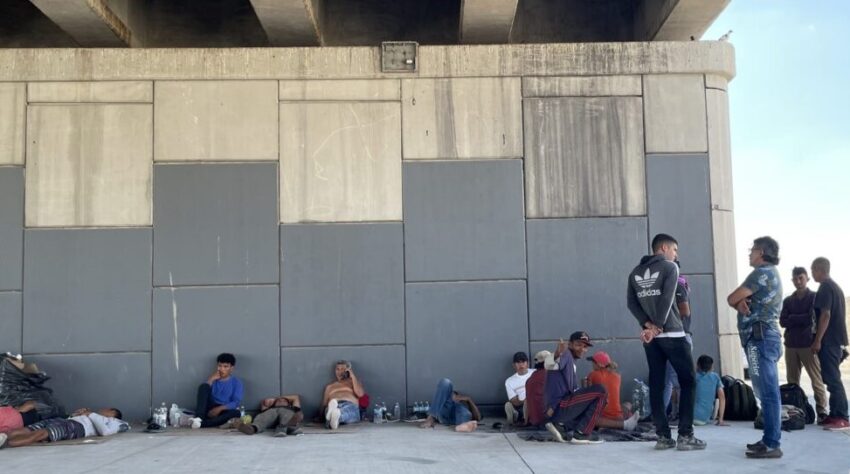 She was among a group of migrants who sat under an overpass near an avenue that runs parallel to the Rio Grande, trying to escape the scorching heat
