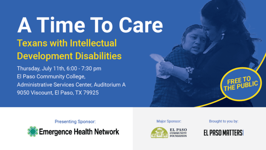 Join an El Paso Matters panel discussion from 6 to 7:30 p.m. Thursday, July 11, in Auditorium A of El Paso Community College’s Administrative Services Center, 9050 Viscount Blvd., regarding Texans with intellectual and developmental disabilities and the future of state funding to help support this community.