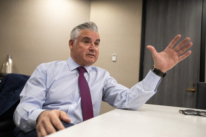 Ysleta ISD Superintendent Xavier De La Torre discusses the district’s budget deficit, Friday, May 24, 2024. De La Torre attributed some of the shortfall to required investments in security and to the statewide loss of federal funds for the School Health and Related Services program. (Corrie Boudreaux/El Paso Matters)