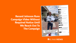 The article Renard Johnson Runs Campaign Video Without Required Notice Until We Reach Out To The Campaign appeared first on El Paso News.