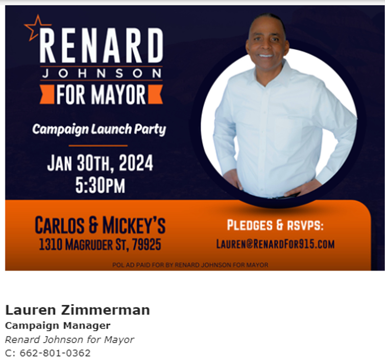 In a report last week, we announced that Renard Johnson is running for Mayor of El Paso and that he will represent the interests of our local business elite.