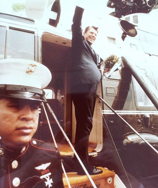 Between 1978 and 1982, he served honorably in the United States Marine Corps, including on the security detail of President Ronald Reagan. He was appointed Crew Chief on Marine 1 and met many times with the President. He traveled the world with him and got a front-seat view of international events!