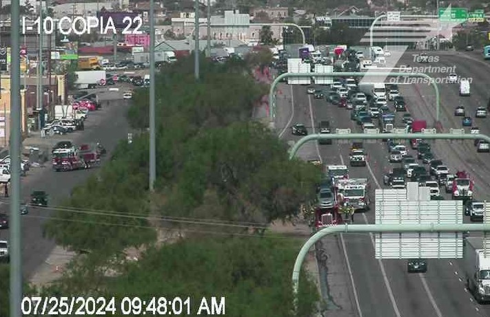 TxDOT is currently reporting that the right three lanes and the Copia Exit are closed on I-10 East. All lanes are closed on Gateway East and San Marcial Street. Back up is being reported to Cotton.