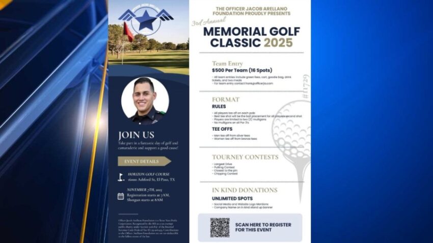 EL PASO, Texas (KTSM) — The Officer Jacob Arellano Foundation is inviting the community to the 3rd annual Memorial Golf Classic 2025 this Friday, Nov. 7, at the Horizon Golf Course.