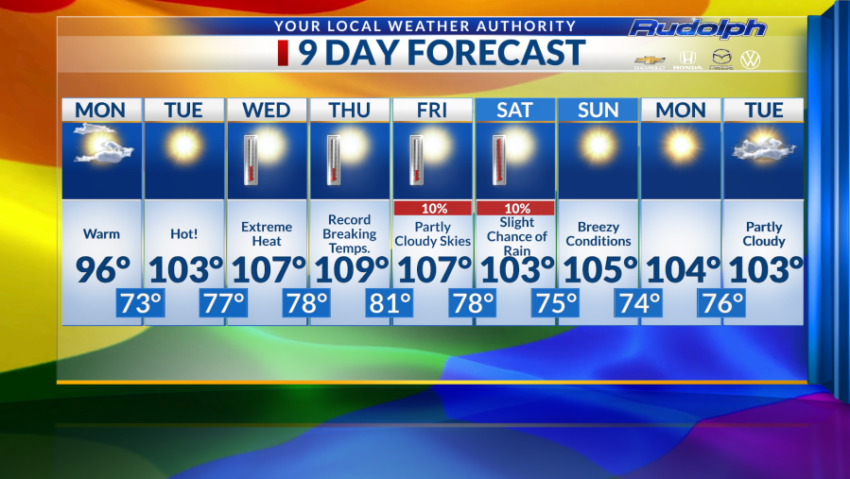 We remain in the triple digits for the rest of the week, and overnight lows are expected to linger in the mid 70s.