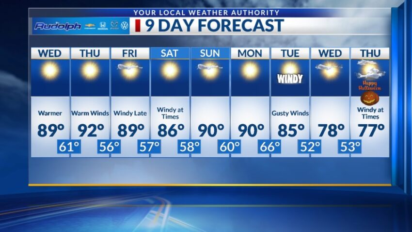 I encourage everyone to come out to the Outlet Shoppes of El Paso Saturday from 10AM to 4PM for Weather Fest! It’s absolutely free, and you’ll get to see a number of very clever science and technology projects from local schools. Below are five different teams from EPISD. The creativity and brilliant engineering of these young people is worth seeing. AND… as a bonus, a little “cool front” blows in Friday night, dropping Saturday’s high to 86. Your forecast is below…