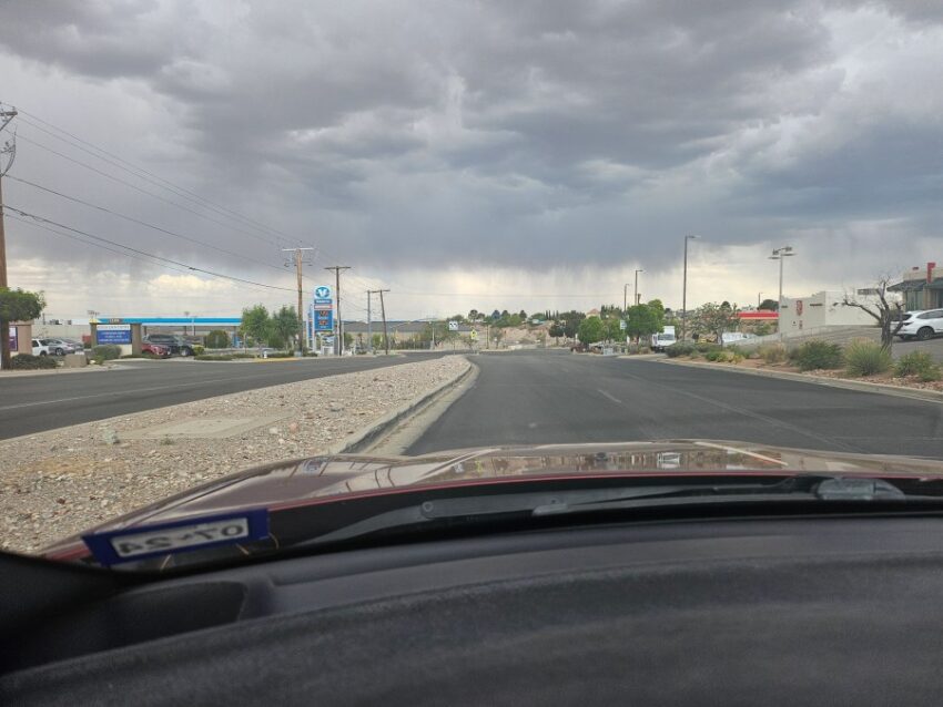 What a fabulous weather day with clouds, showers, and isolated t-storms. Though most evaporated before it hit the ground, such as in this picture from Weather Watcher Vivian Corral, some drops fell through, cooling us off. The official high today was 86, and we received a trace of rain at the airport.
