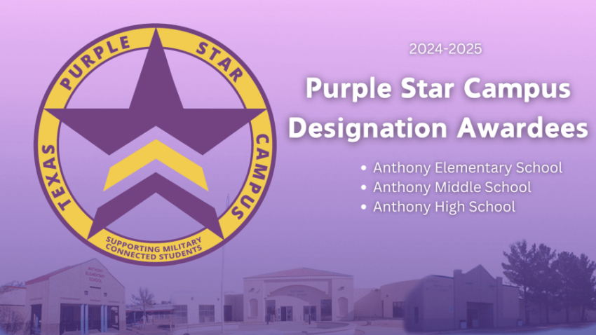 EL PASO, Texas (KTSM) – All campuses in the Anthony Independent School District (AISD) were recognized with the Texas Education Agency’s (TEA) Purple Star Campus Designation, the district announced in a news release sent Monday, Sept. 23.