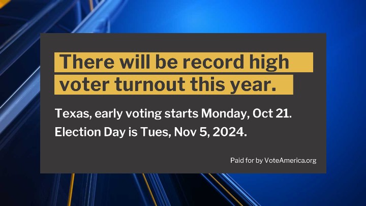 VoteAmerica’s messages are simple: “There will be record high turnout this year; early voting in Texas starts October 21. The election is on November 5, 2024.”