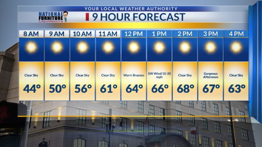 What a difference a day makes. Sunday was cloudy and 52. Today was sunny and 65. If you liked today, you’ll love tomorrow as we warm up even more. Here’s your exclusive 9-Hour Forecast for Tuesday with your 9-Day Forecast below. TONIGHT: The skies will be clear, and the winds will be light making for […]