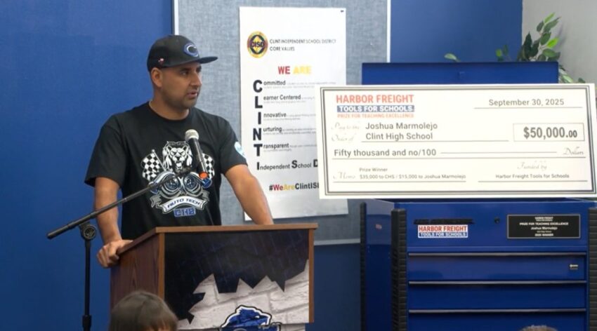Marmolejo and his school were presented with a $50,000 check on Monday morning during a surprise ceremony held on campus. Of the total check, the news release stated that Clint High School’s skilled trades program received $35,000, and Marmolejo received $15,000.