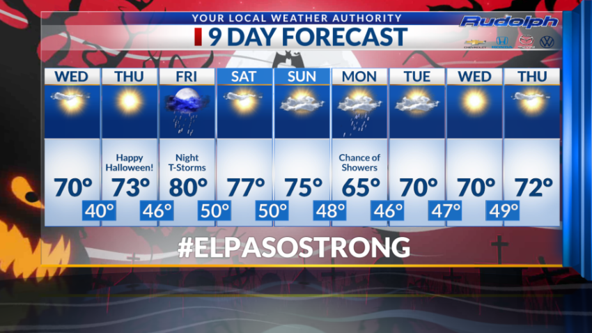 Your Halloween forecast is definitely a treat with a high of 73 and a low of 46. On Friday, a storm front brings extra moisture into our region. We can potentially see evening showers with thunderstorms just before midnight. A high of 80 and a low of 50 is expected.
