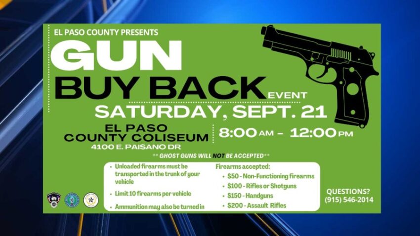 EL PASO, Texas (KTSM) — El Paso County will be hosting its second annual 100 percent anonymous community gun buyback event on Saturday, Sept. 21, at the El Paso County Coliseum.