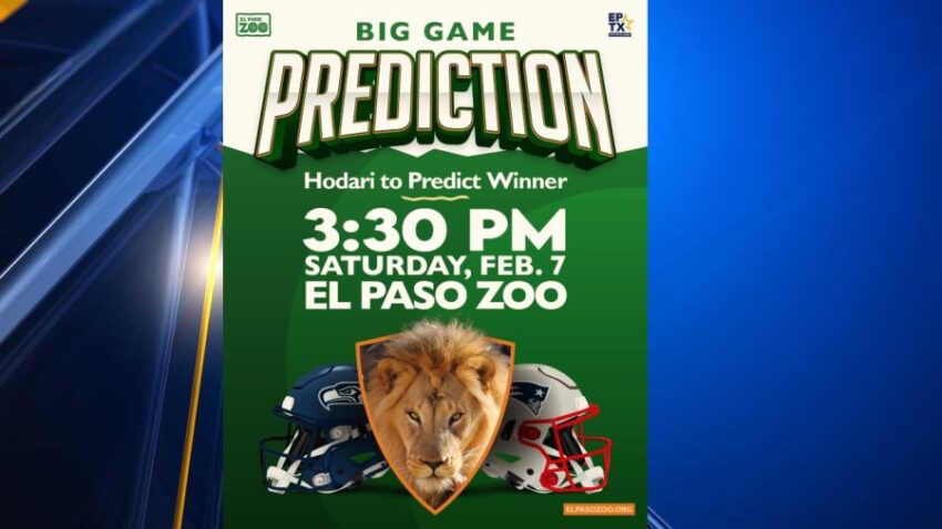 EL PASO, Texas (KTSM) — El Paso Zoo’s African lion Hodari will be predicting the winner of this year’s Super Bowl LX between the New England Patriots and the Seattle Seahawks next Saturday, Feb. 7. The event will take place at 3:30 p.m. on Saturday, Feb. 7, at the El Paso Zoo and will be […]