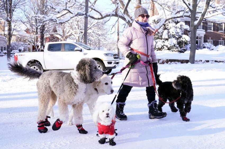 Paws, ears and tails are prone to frostbite. After pets come indoors, check these areas for redness, swelling or sensitivity and use a towel to remove any moisture.