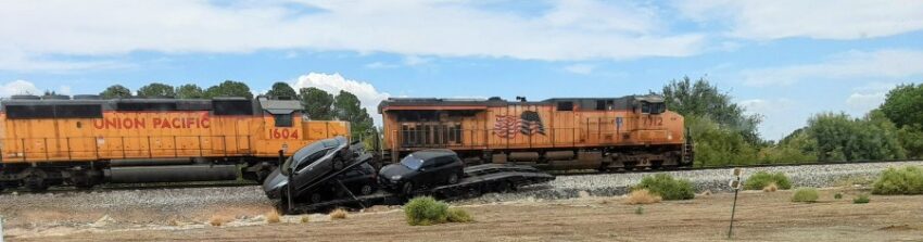 EL PASO, Texas (KTSM) – A truck hauling several vehicles was struck by a train Wednesday afternoon, Aug. 7 in Fabens, according to the El Paso County Sheriff’s Office (EPCSO)