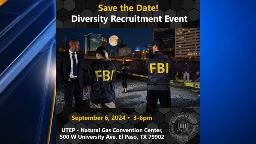 EL PASO, Texas (KTSM) – The FBI El Paso Field Office will host a recruitment event in September to encourage individuals from diverse backgrounds to explore career options in the FBI.