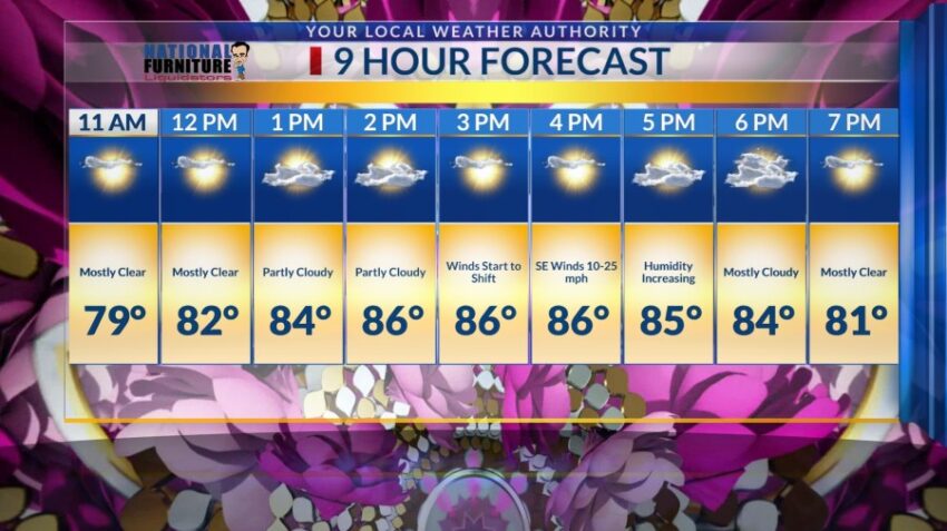 EL PASO, Texas (KTSM) – Feliz Dia De Las Madres! If you’re planning to go out and celebrate Mother’s Day, we’re forecasting a high of 86 degrees by 2 p.m. with partly cloudy skies.
