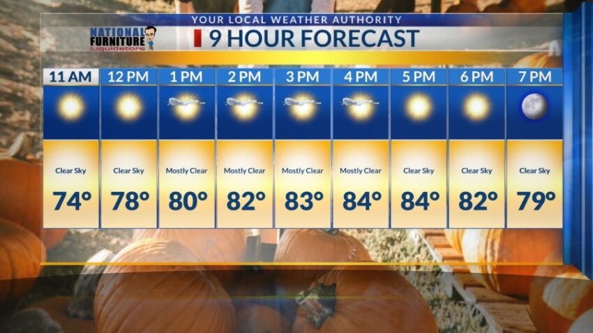 If you haven’t gone to the pumpkin patch, today will be a great day to go as the weekend begins. Mostly clear skies will linger today and tomorrow with winds remaining light throughout the day.