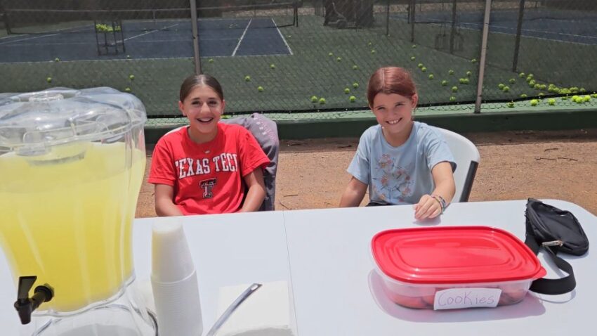 Knowing it would be muggy and hot by the afternoon, two industrious young ladies set up a lemonade and cookie stand. (No, there were no free samples. I’ll bring money next time.)