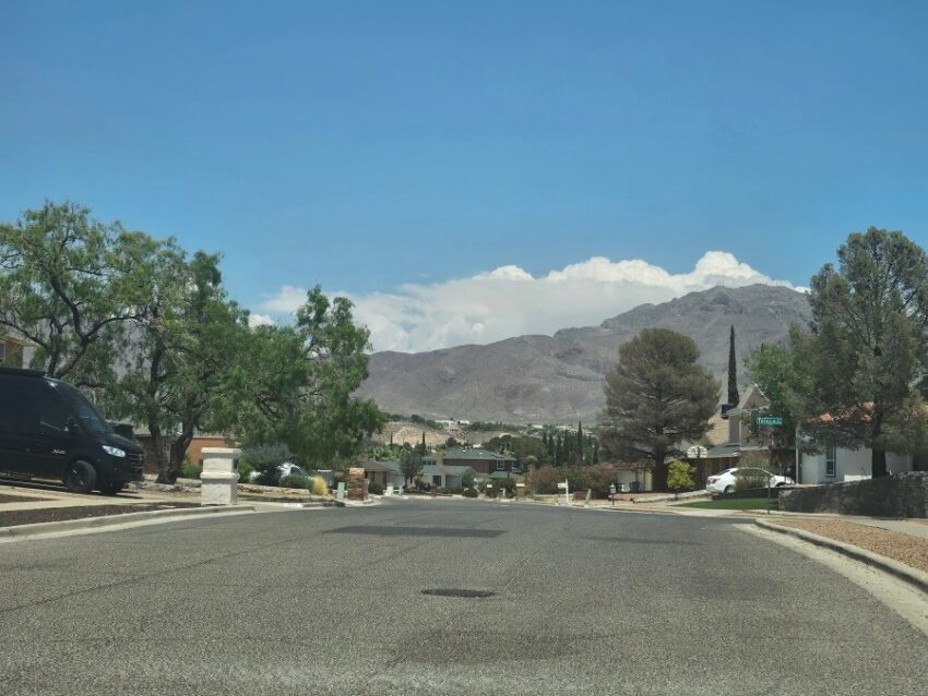 Weather Watcher Vivian Jordan-Corral sent this picture of the clouds trying, REALLY TRYING to turn into a rain cloud over the Franklin Mountains today. Because of the record heat, we did get one isolated shower on the far east side of the county. We’re going to have to wait several more days before the rain chances improve.
