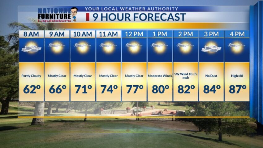 Well, any day where we don’t have a dust storm is pretty darn nice! Today, we enjoyed partly cloudy skies, lighter winds, and no dust. Tomorrow, the winds get a little stronger but (thankfully) no dust. Here’s your exclusive 9-Hour Forecast for Tuesday with your 9-Day Forecast below. TONIGHT:   The skies will be mostly clear […] Read: Read More