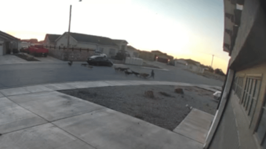 Home surveillance video shows multiple dogs running after the child as she tries to get away. Her father is seen rushing toward her after hearing her scream.