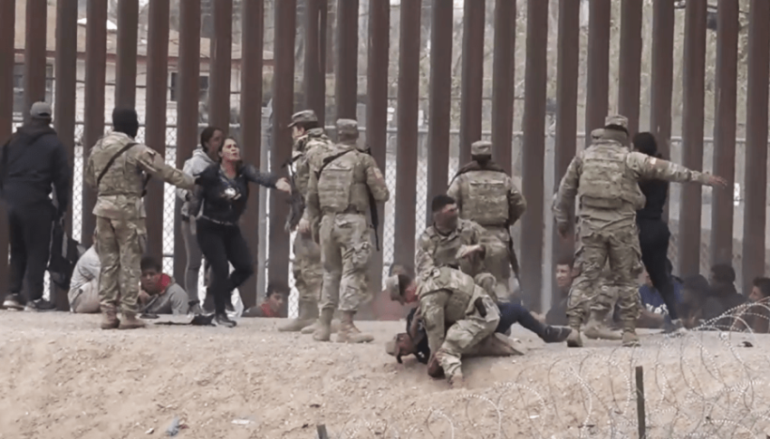 Asylum-seeking families take cover after Texas National Guard fires pepper balls
